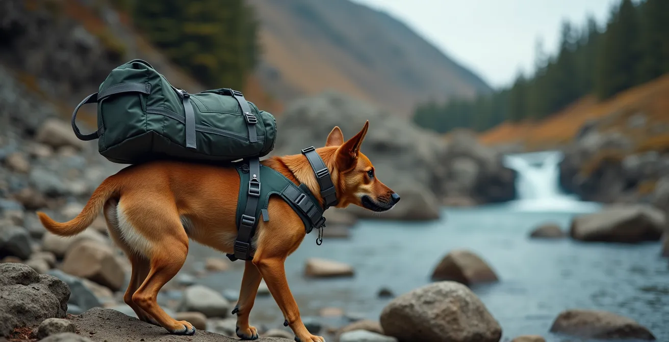 Notice how the saddlebags are positioned forward, ensuring the center of gravity is over the shoulders. When packing, place heavier items (like water) in the bottom and forward part of each pannier, and ensure both sides are equally weighted. An unbalanced pack will shift and rub, causing painful chafing and forcing your dog to adjust its gait unnaturally to compensate, which can lead to injury.